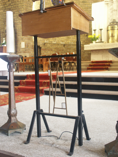 Grijs marmeren hoogaltaar. Tombe met vier zuilen aan de voorzijde.