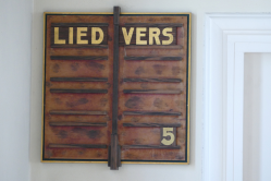 Aankondigingsborden Twee houten lied-aankondigingsborden, met coromandelhouten regels en bijhorende cijferbordjes. Datering: 1930. Afmeting per stuk: h. 71 cm, b. 65 cm. Inventarisnummer: 106607 Categorie: Dit voorwerp delen Wilt u iemand anders over dit voorwerp vertellen? Stuur dan hier een e-mail over dit voorwerp. Aantal aanvragen: 1 Aanvragen › U kunt reageren tot 01-01-2026 Aangevraagd door: #Tijd1.8:49:55 (10-10) Terug naar het overzicht